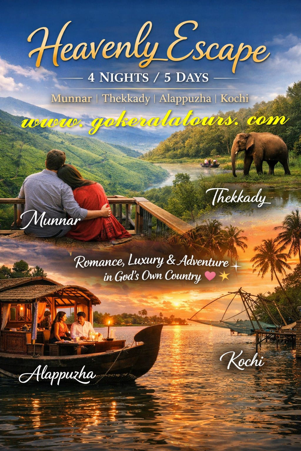 Welcome to Go Kerala Tours, your gateway to experiencing the timeless beauty and soulful charm of Kerala, famously known as God’s Own Country. From the tranquil backwaters of Alappuzha and the mist-covered tea plantations of Munnar to the thrilling wildlife adventures of Thekkady and the historic coastal elegance of Kochi, we curate unforgettable Kerala tour packages designed to blend nature, culture, comfort, and authentic local experiences. Imagine cruising on a traditional houseboat across serene canals, breathing in the cool mountain air, exploring spice-scented forests, and watching golden sunsets over palm-fringed beaches — every journey with us is thoughtfully crafted to create lasting memories. Whether you are planning a romantic honeymoon, a luxury retreat, a family vacation, or a customized Kerala holiday, Go Kerala Tours ensures seamless travel arrangements, handpicked stays, personalized itineraries, and warm hospitality that transform your dream trip into a beautiful reality.