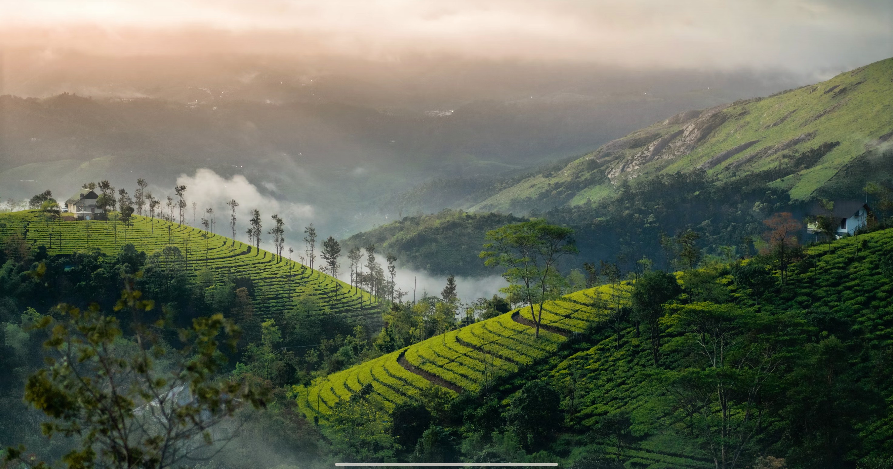 🌄 Munnar – Misty tea gardens, waterfalls & romantic hill station vibes